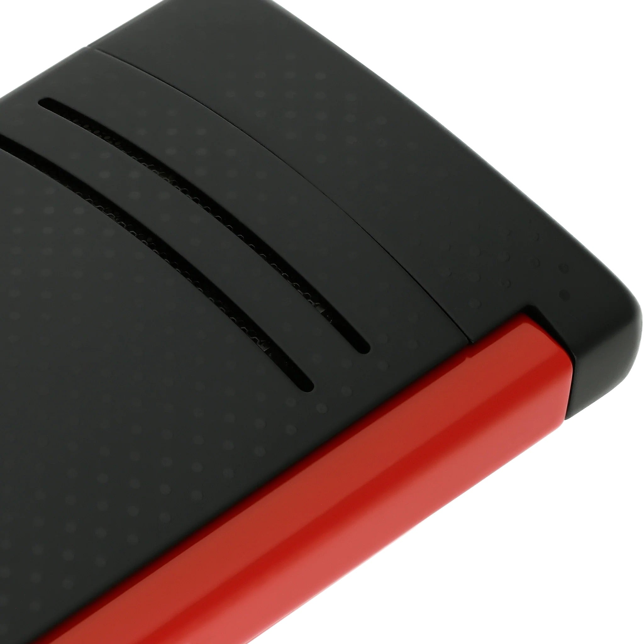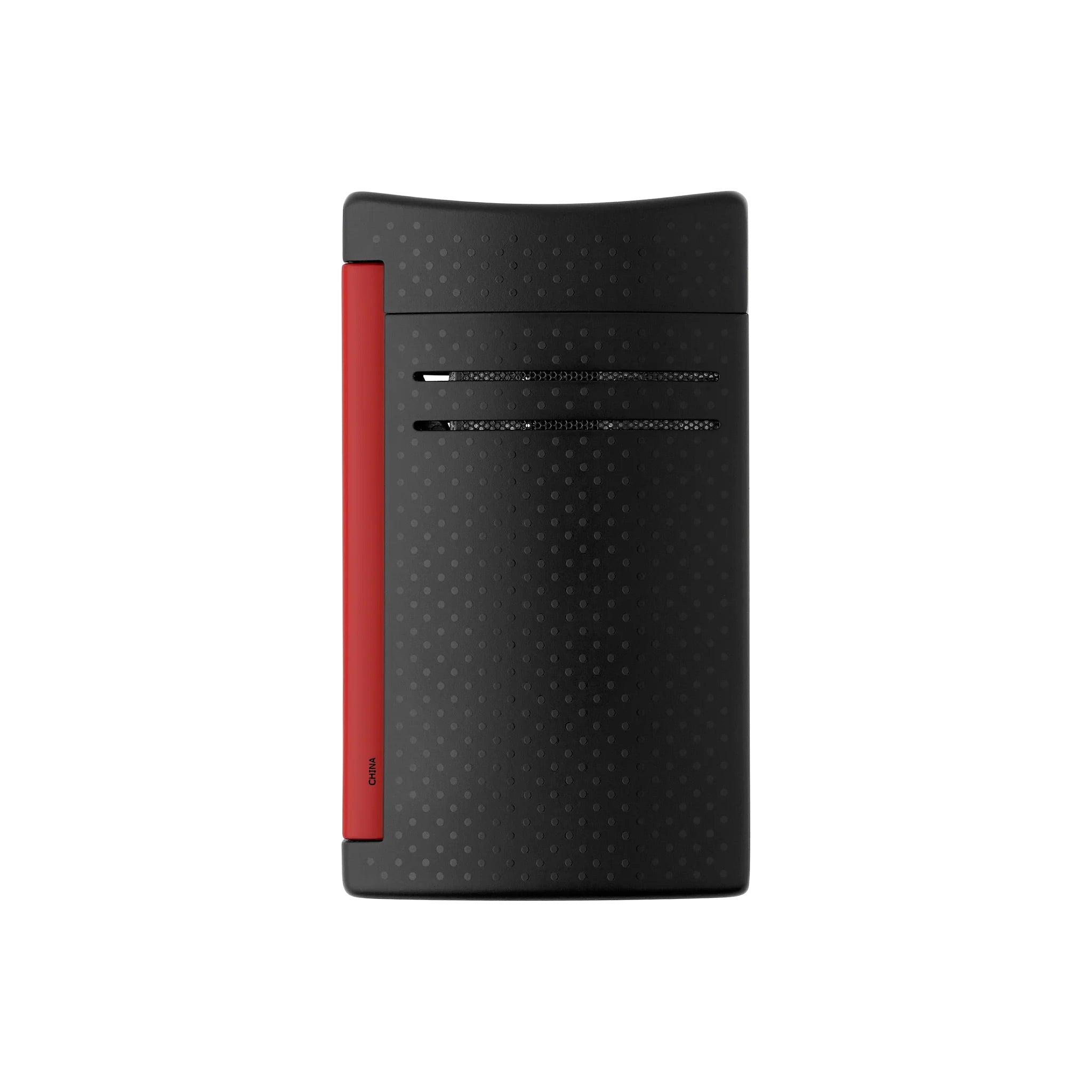Encendedor MaxiJet con acabado negro mate y gatillo rojo, el compañero perfecto para los fumadores de puros gracias a su llama de soplete muy potente.