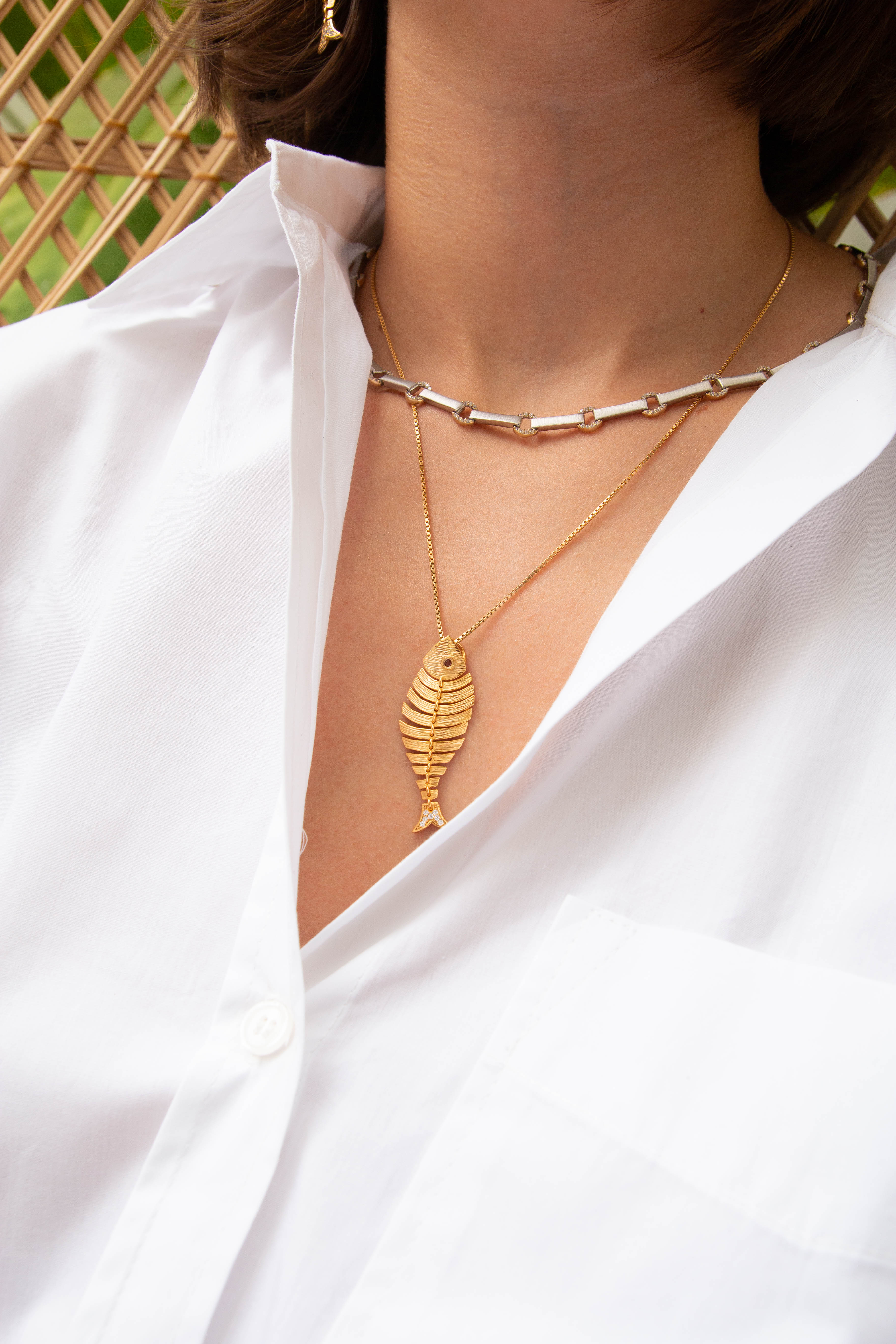 The fish has movement. 45cm chain included. It is also 925mm Sterling Silver.